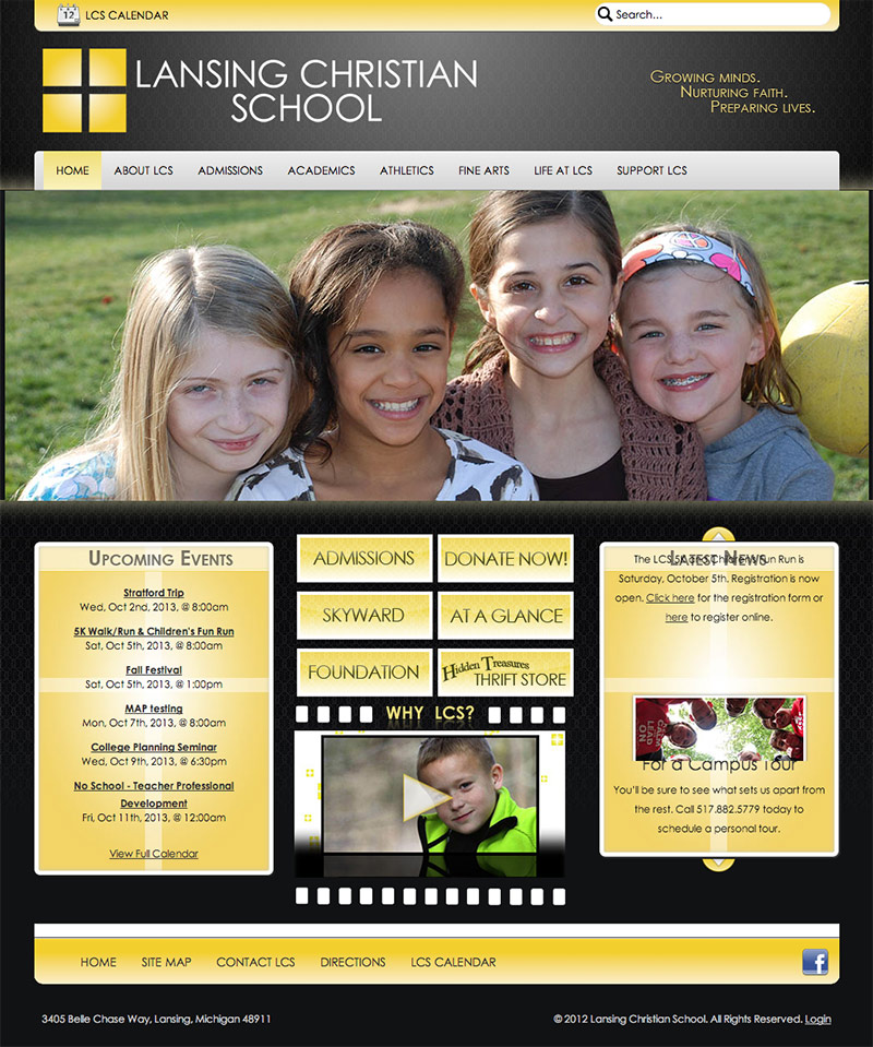 My work with Lansing Christian began in 2002 with a contact who brought me onboard from our previous work together. I was the lead designer for the redesign of the 2012 LCS Joomla website. This included a multitide of custom components, calendar installation, and the development and data gathering of an extensive admission inquiry form. I am also the sole developer for a separate Foundation website.